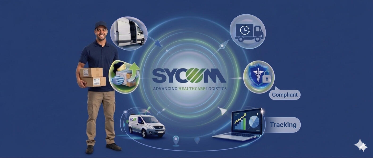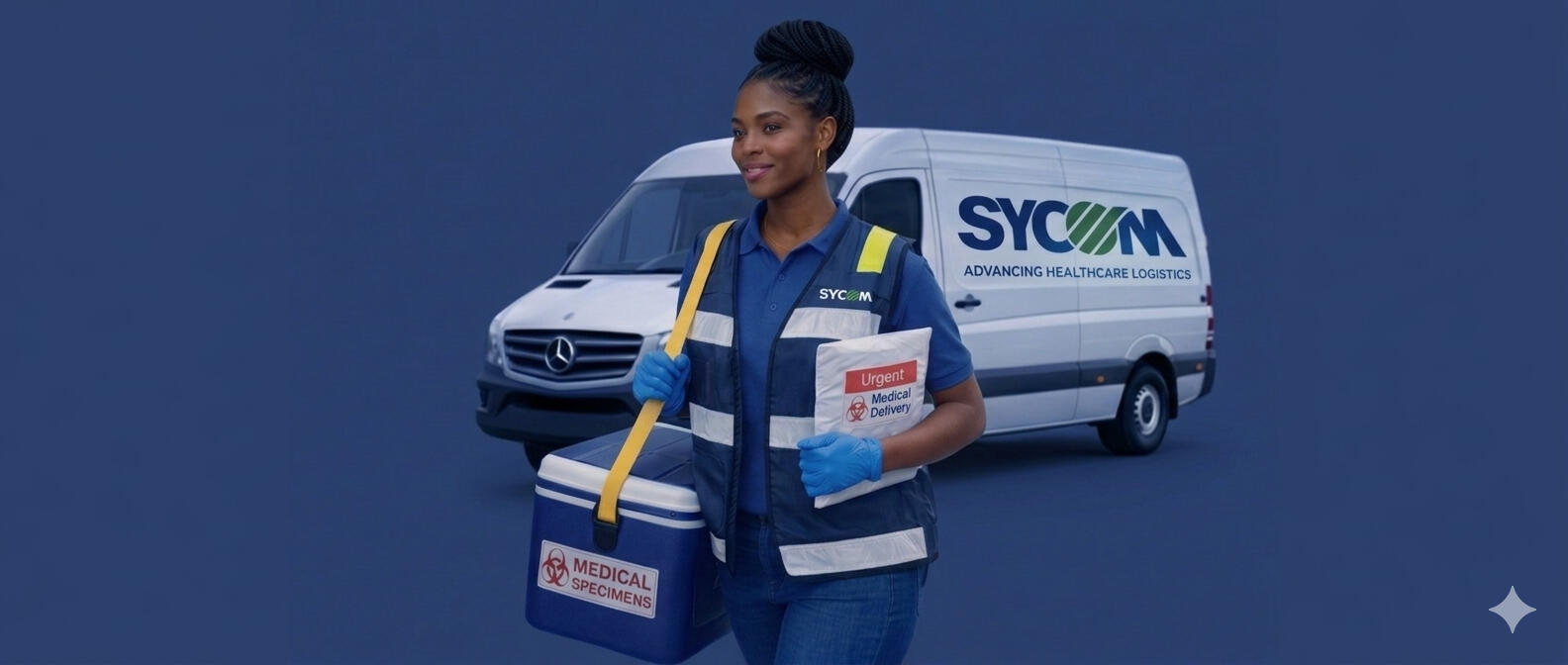 SYCOM provides secure, compliant healthcare logistics and medical courier services tailored to healthcare providers. We specialize in time-sensitive and high-priority deliveries, ensuring every item is transported with precision, accountability, and care.We transport: